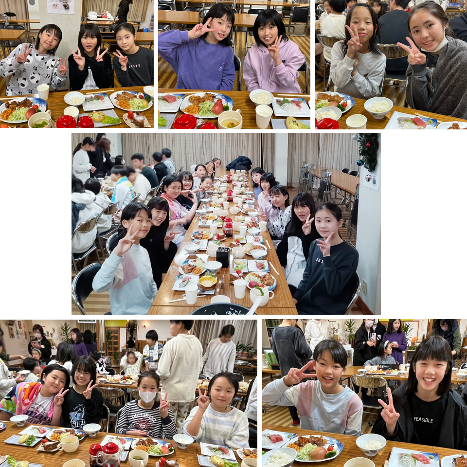 大きなお風呂にみんなで入り、そのあと夕食!
