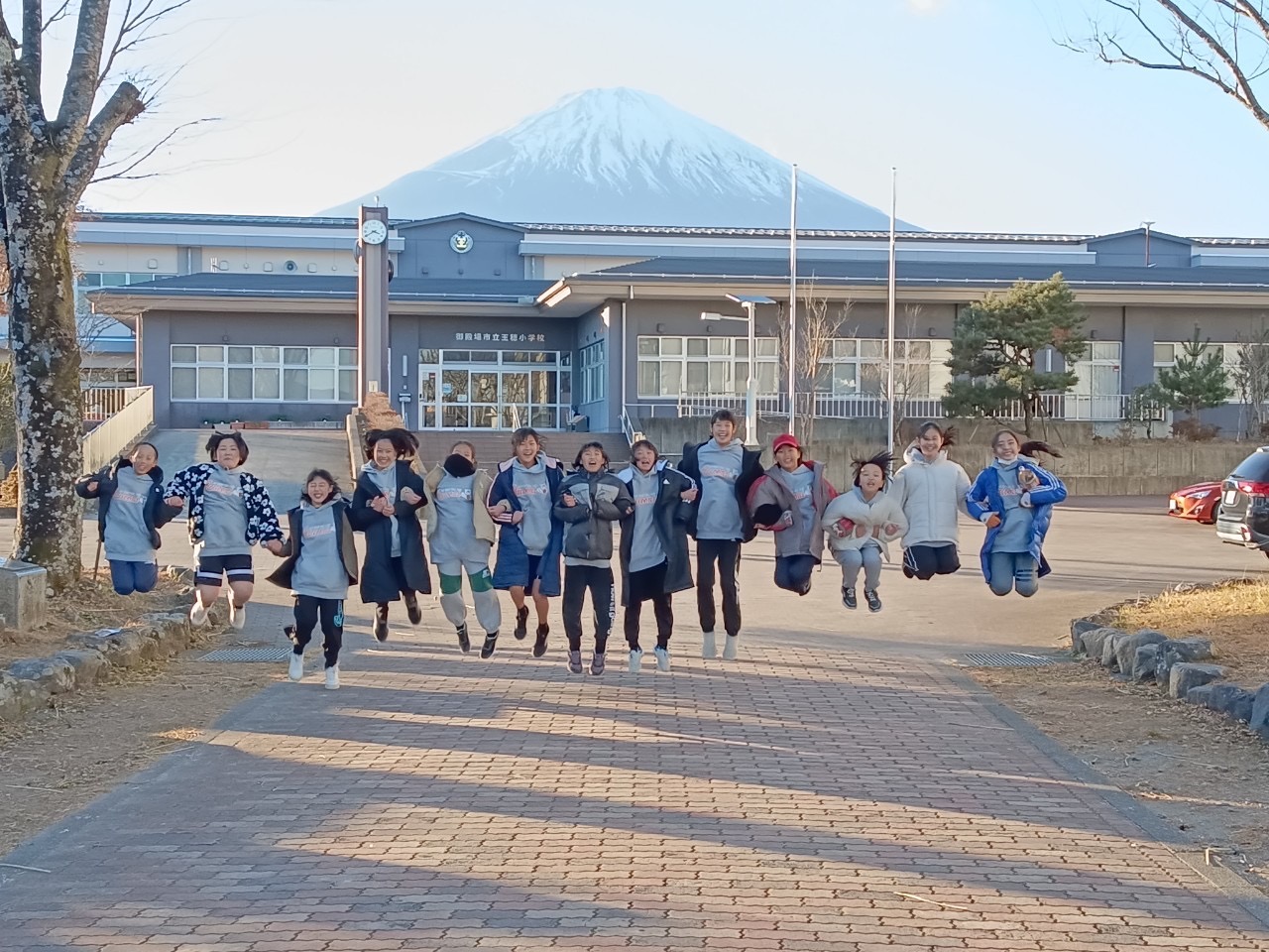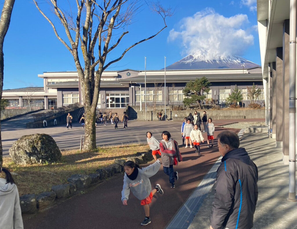 初日の会場は河口湖畔にある小学校。道中、会場に近づくにつれ高速道路からクッキリと富士山が見え…車の中で子供達のテンションは少しずつ上がっていきました!