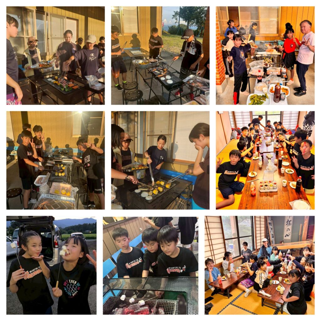 監督やコーチ達が火おこしをしてくれていたのであっという間にBBQスタート✨お待ちかねのお肉たちは6年生がメインで焼いて食べました!皆で協力し合って、焼く担当・運ぶ担当に分かれてキッチンではラクーンズの母達もお手伝い😆