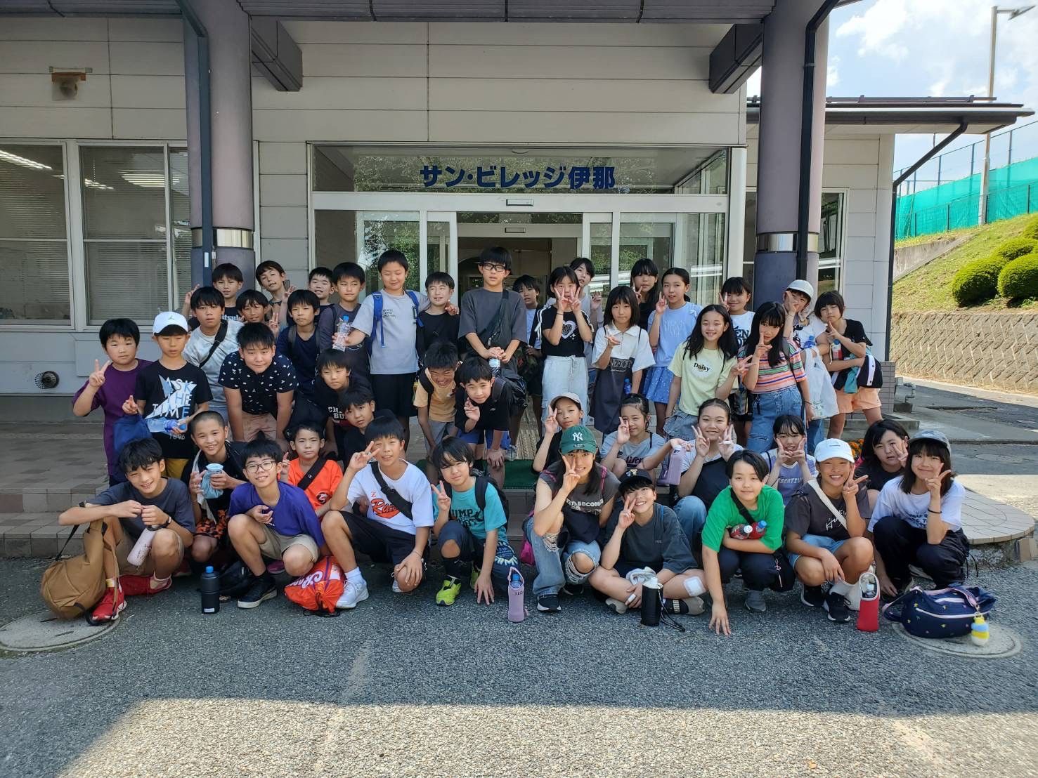 宿の方も見送りにきてくださり体育館の前で全員で写真をパシャ📸