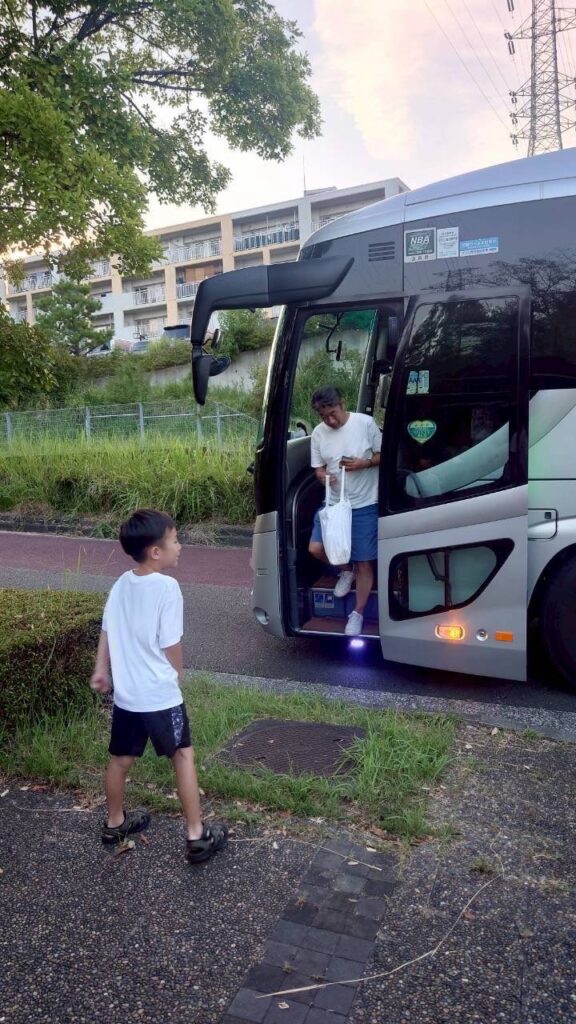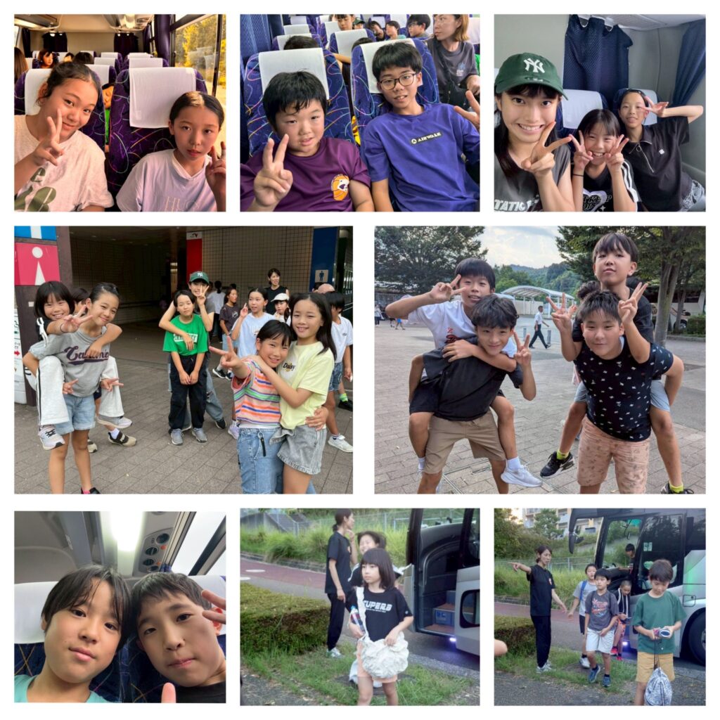 バスの中では合宿中にいろんなイベントで稼いだお菓子を各々思い出と共に食べていました。