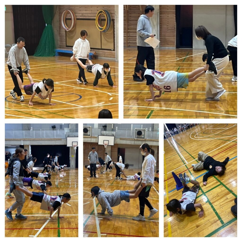 さて、親子バスケ対決のあとは、全員フリースロー、手押しぐるま競争、