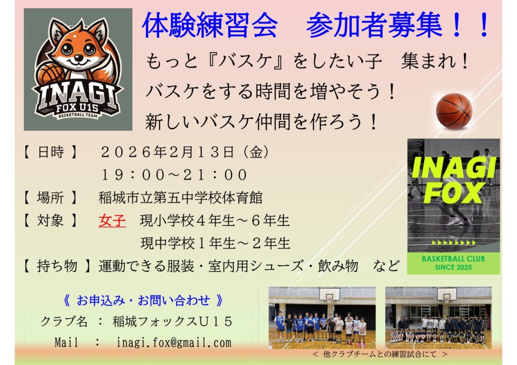※男子とは別日程、別会場での体験会となりますのでお間違いないようご注意ください。